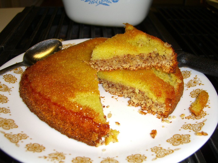 As I was perusing some recipes, trying to decide what to concoct today, I came across a recipe on the Sons of Norway website for Almond or Nut Cake. Since I’m still trying to rediscover my culinary heritage or whatever I figured this would be a point in my favor. I was intrigued by the ingredients list: eggs, baking powder, sugar and almonds. That’s it. I’d never seen a cake recipe that looked like that before so I had to see if this would really work. What do they say about curosity and the cat?