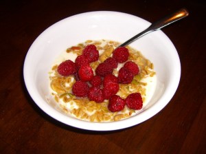 After about 12 hours, I opened the oven. With high anxiety, I reached in and grabbed my jar. It was suprisingly warm for the oven having been off for half a day. The oven light really does a good job of keeping it just warm enough. I was relieved. It didn’t taste half bad, either. I enjoyed it over a number of days with raspberries and a little granola that I picked up at the farmer’s market.