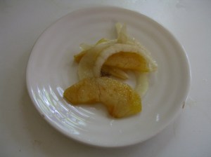 Apple and Onion: I made this one too early. This really needs to go with Thanksgiving dinner. The cinnamon mixed with the vinegar is fun and suprising. I could totally see this going with any kind of a roast.