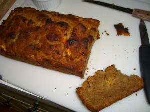 The bread turned out super moist, thanks to the coconut oil and juicy peach bits. I didn’t need to even put butter on it, and I definately did not miss that extra cup of sugar. In fact, I think all that sugar would have made it too sweet and ruined it. America is over-sugared. Just a little sweet goes a long way once your taste buds have stopped being inundated with sweeteners.