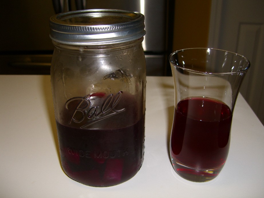 Kvass in the jar and in the glass. In real life, it's much more purple than it looks here.