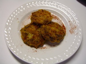 Since I only had two tomatoes I halved the recipe. Also, I used the lard I rendered last week to do the frying. Test subject Bill was suspicious when I told him what I was making (he’s from Nebraska…) but I was confident he would become an enthusiastic supporter once he tried them.