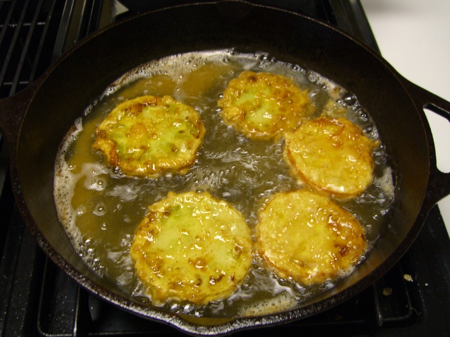 4. Fry as many as will fit in the oil, about 3-4 minutes on each side. The batter should be golden brown all over.