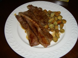 Since I was frying and had all this nice lard and happened to pick up a basket of okra at the farmer’s market, fried okra was the natural progression. I did a lot of research on different recipes but settled on this one. I did end up modifying it a bit based on some other recommendations on other recipes (I used half cornmeal and half flour for the coating), but it came out fantastic! The coating totally stuck to the okra and came out crunchy and flavorful. I think even my okra-hating Dad would have loved this. After all…what food does frying in lard NOT improve?