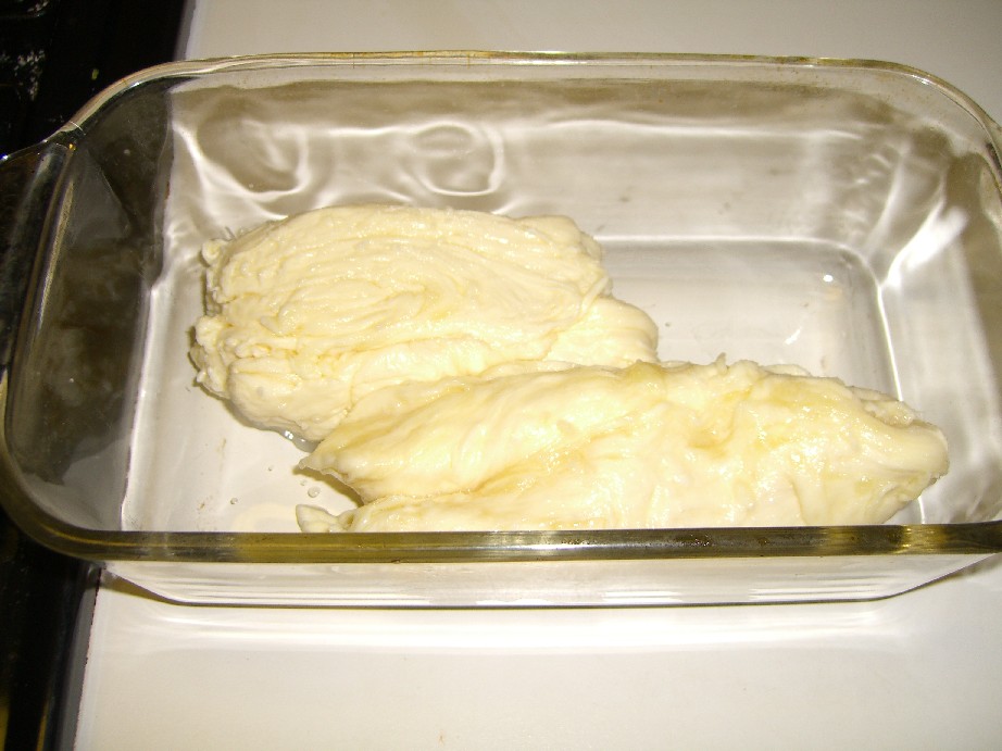 When I got done stretching my cheese and trying to work the salt in while I did that (also not an easy task when your cheese isn’t hot enough) I put it into ice water. This is supposed to help it keep it’s shape (uh, not a problem for my cheese) and protect the silky texture from becoming grainy (since mine never got silky I don’t know why I even bothered with this step).