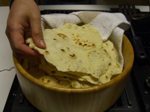 “It’s pretty smoky in here,” he continued after I completely ignored him. I looked around. He was right. Crap. The excess flour on my tortillas was falling off into the pan and…well…burning. Double crap. “You’re going to set off the smoke detector.”