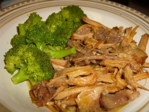 Let me tell you…it was out of this world. I served it with CSA broccoli and poured the gravy over that, too. I was satisfied with a relatively small portion, too. Even test subject Bill was quite impressed and agreed it was a keeper. If I’d had a hula skirt, I would have put it on. This pork, while not Hawaiian luau, is as close as you’re going to get on the mainland.