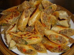 The spring rolls were UH-maze-ing. Sure, it takes some time to do all the chopping, etc., but once you get everything rolled up…guess what? You don’t have to deep fry. I’m serious. We pan fried these spring rolls, just rolling them around in a pan with some oil (again, I’d use coconut oil, but we use canola oil in class which I try to avoid) and they turned out fantastic. Next time you’re on a roll try a pan fry (and make sure you’re using spring roll wrappers, not egg roll wrappers).