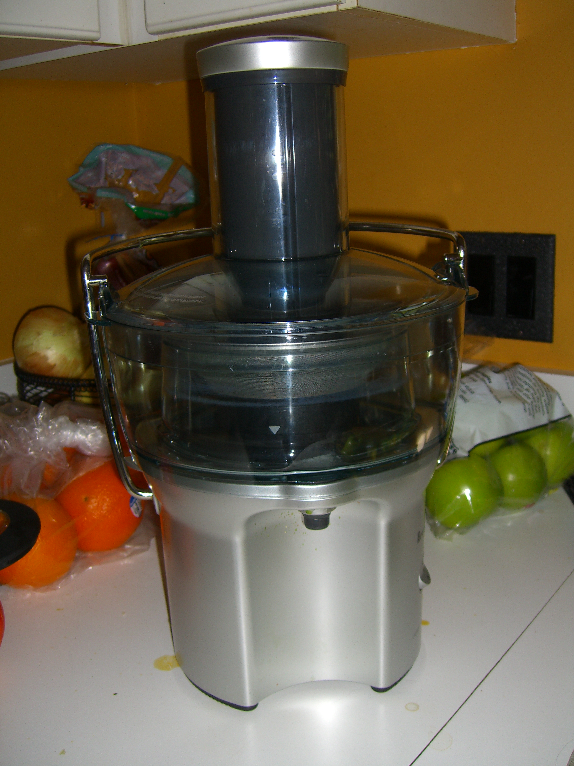 So I went out and bought myself a Juice Tiger. Ok, it’s actually a Breville BJE200XL 700-Watt Compact Juice Fountain . And let me tell you, I’ve been having more fun with this thing than should be permitted! Sticking stuff in and watching it tear it apart never fails to make me feel better. It generates so much lift that if you take your hand off the plunger when it’s running, it almost pushes it back out. Now that’s entertainment.